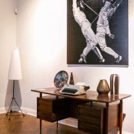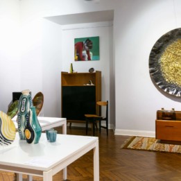 Galeria Dystans wraz z krakowskim projektantem wnętrz Mat Kubajem, zaaranżowała przestrzeń galerii, która jest przepełniona sztuką i ikonami polskiego wzornictwa. Dodatkowym uzupełnieniem wystawy będzie polska ceramika, szkło i porcelana pochodząca z prywatnej kolekcji vintage: Mat Kubaj-Kolekcja Designu.
