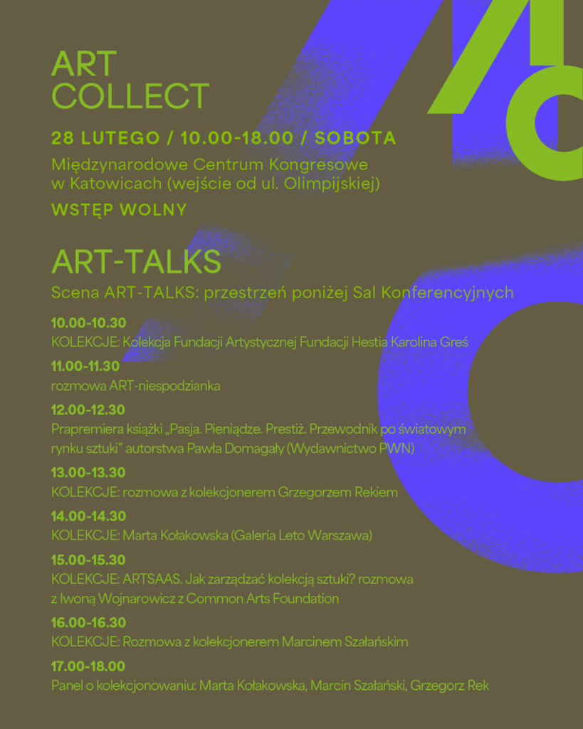 Zachęcamy do uczestnictwa w licznych wykładach i panelach dyskusyjnych, których tematyką będzie sztuka i jej kolekcjonowanie.