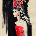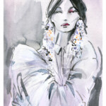 Ilustracje Eleny to odzwierciedlenie jej temperamentu, charakteru i zamiłowania do nasyconych krajobrazów rodzimej Mołdawii. Czarna kreska próbuje ograniczyć, nadać formę i uporządkować wszechobecne plamy tuszu. Mocne barwy atramentów niczym czerwień czereśni i bordo czerwonego wina, niesfornie wybuchają odcieniami zalewając cały papier. Wszystko to oddaje w pełni pasje Eleny do życia, piękna, mody i sztuki. Szkice z pokazów mody doskonale oddają kobiecy zachwyt i reporterską zdolność przekazania historii, którą opowiada projektant. Grafiki przepełnione są atmosferą wydarzenia, rytmem, feerią barw rozświetlonych przez flesze aparatów. W powietrzu zdaje się wyczuć zapach perfum Chanel, Diora czy Victora&Rolfa. Zdaje się, że każdy kolor ma swój zapach i osobowość.