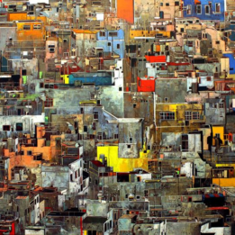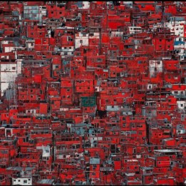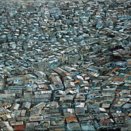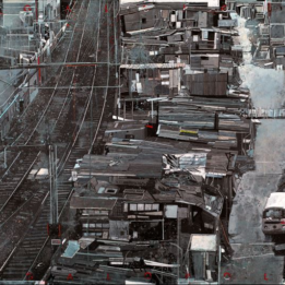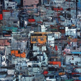 ,,Constraction’’ i ,,Megalopilis’’ to główne cykle obrazów, Artura Przebindowskiego, które mają kontynuacje po dziś dzień. Oba tytuły są same w sobie opisem wszystkich jego prac, malowanie ich jest za każdym razem jak konstruowanie wielkiego miasta. Buduje je z wielką determinacją, wypełniając każdy skrawek płótna składową wszystkich aglomeracji. Rozbija miasto na tysiące kawałków, ujęć, perspektyw i elementów, aby na sam koniec stworzyć z nich jednolitą, monolityczną, pełną wewnętrznych napięć – tkankę miasta. Nie ma w niej człowieka, jest jak pusta skorupa, jak świadectwo jego istnienia, pozostawione artefakty ludzkiej działalności. Nieczęsto, a raczej z rzadka pozostawia on za sobą doskonałą myśl architektoniczną, jego dziedzictwo to niepewna zabudowa, złożona z kilku nierównych ścian, wykutych okien, sypiących się podziałów, lejących kabli i łączeń, jak prowizoryczne schronienie na całe lata. Taką wizją oddaje on wygląd nie tylko biednych miast Ameryki Południowej, lecz również miast współczesnych, nawet tych najbogatszych. Inspiracji poszukuje na zapleczach metropolii, w bocznych ulicach, podwórzach i obrzeżach, tam gdzie nieskrępowana schematem działalność człowieka, tworzy z tego co potrzebne i niepotrzebne własną architekturę, własny dom i świat. Metry płócien przypominają mapy miejsc totalnych i globalnych, prawie abstrakcyjnych, przeoranych szramą ulic i podziałów. To co materialne wydaje się być widoczne w geście artysty, w naciekach farby, zachlapaniach i wytarciach, jak podpis na nowej architekturze – tu byłem.