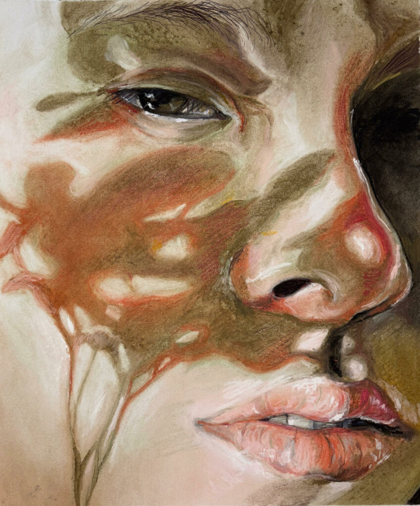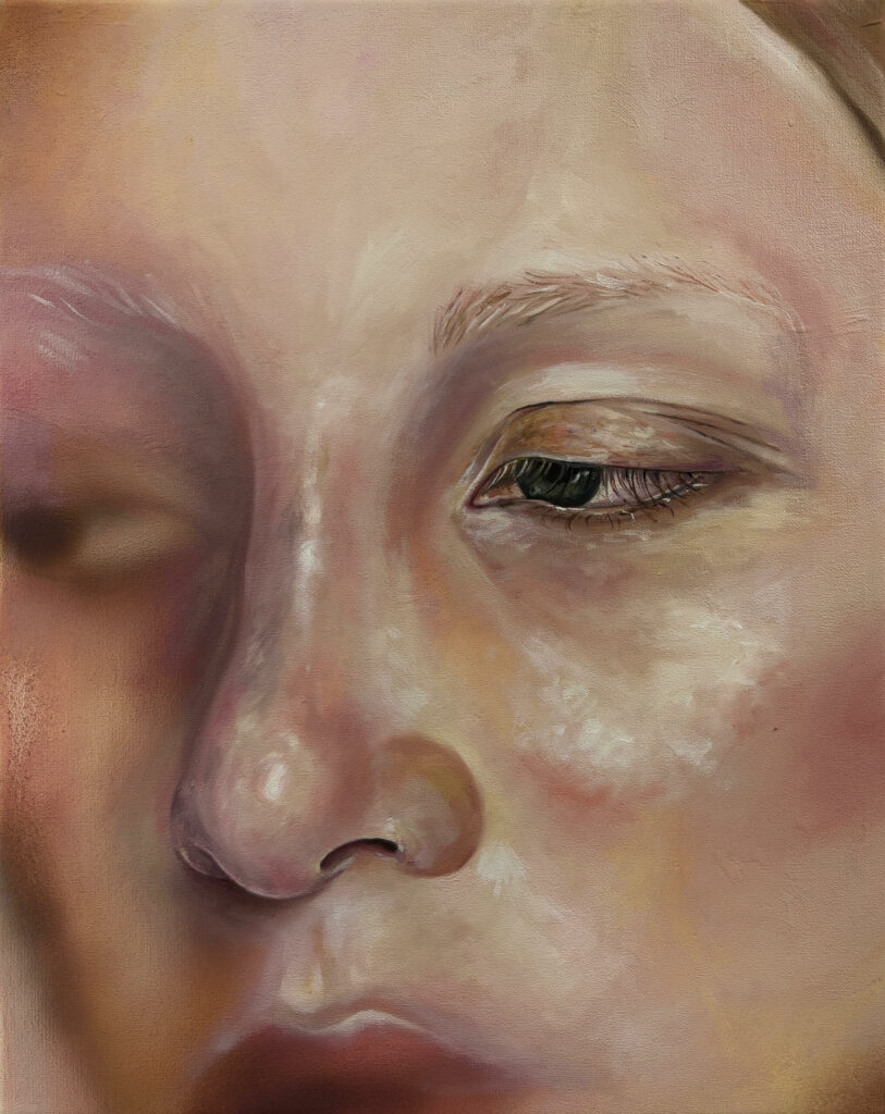 Saudade to portugalskie słowo, którego nie da się dokładnie przetłumaczyć na inne języki – oznacza złożone uczucie tęsknoty wykraczające poza jednoznaczne wspomnienie. To nostalgia za czymś, co mogło nigdy nie istnieć w pełni, lub za chwilami, które minęły, ale wciąż pozostają obecne. To uczucie pełne niepokoju, smutku ale i piękna, które trwa w przestrzeni między zapomnieniem a wspomnieniem. W mojej twórczości staram się uchwycić niemożność pełnego powrotu do przeszłości, oddając tęsknotę za ulotnymi momentami, które choć zniknęły, nadal żyją w pamięci.